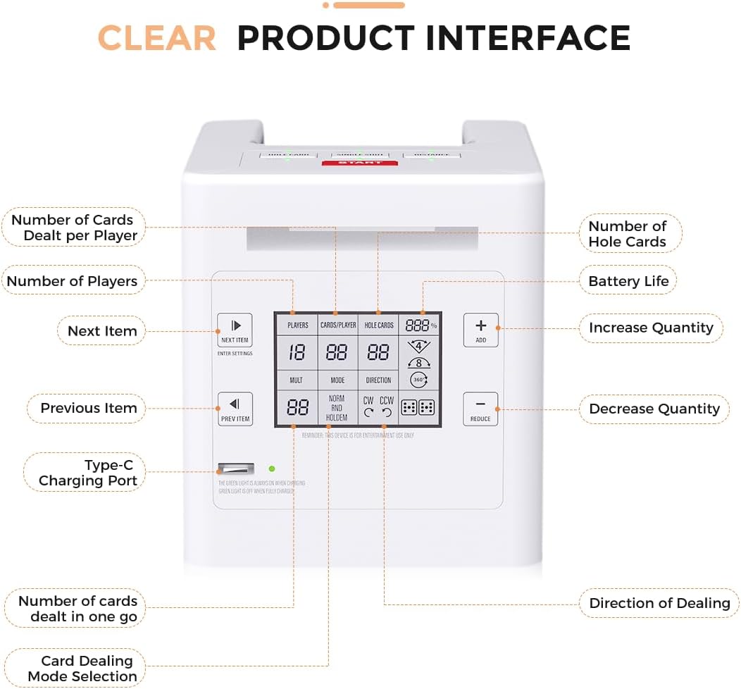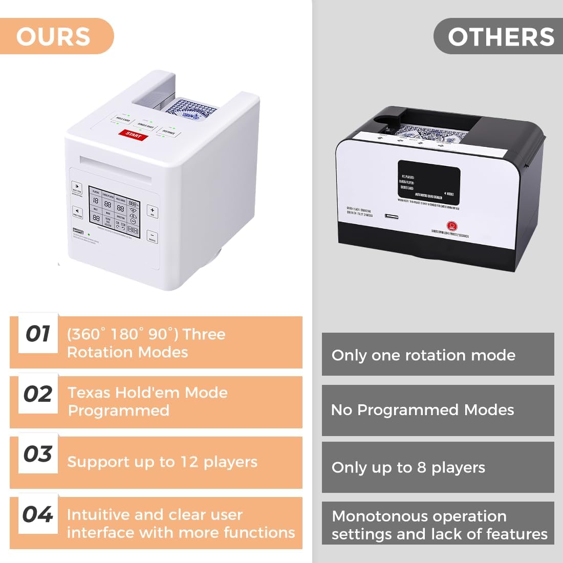 Card Dealer 4 Decks 12 Players Max 360° 180° Rotating Card Dealing with Texas Hold'em Mode