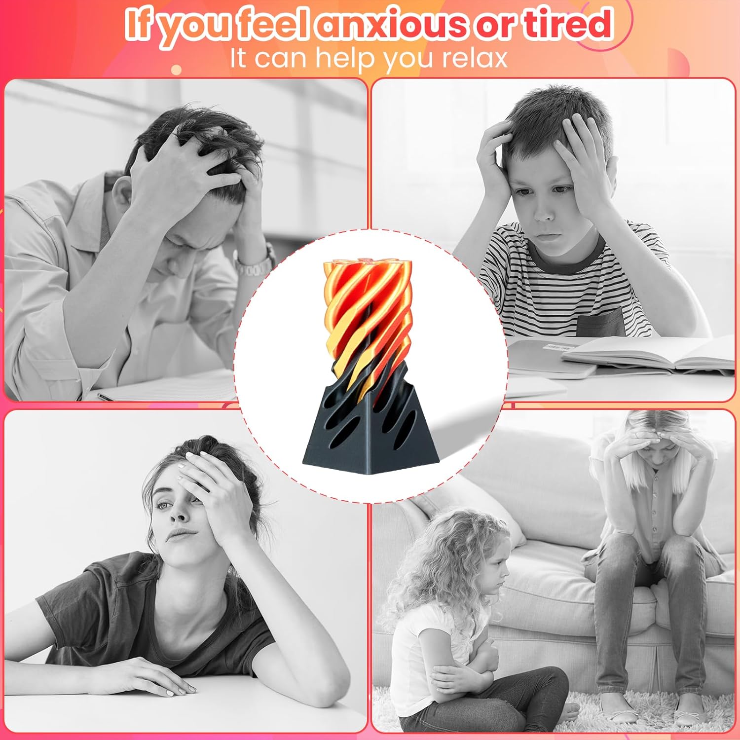 Impossible Pyramid Passthrough Sculpture, 3D Printed Spiral Cone Fidget Toy, 3D Printed Crafts, Adult Decompression Toys, Decompression Toys and Gifts for Kids,Stress Relief Desk Toy (Black Gold)